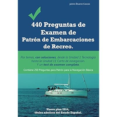 Reseña del editor Este libro contiene preguntas de examen del Plan de estudios del 2014, formuladas en diferentes Comunidades Autónomas, aunque el programa es el mismo en todas y no hay grandes diferencias de unas a otras. NOVEDAD: CONTIENE INDICACIONES PRECISAS PARA RESOLVER PREGUNTAS DE TEST DE PROBLEMAS DE CARTA DE NAVEGACIÓN, SIN CONTENER LA RESOLUCIÓN GRÁFICA. Después de haber estudiado el temario del Libro de Patrón de Embarcaciones de Recreo (PER) (puedes encontrar nuestro libro en formato ebook Kindle en Amazon.es) la mejor forma de prepararte para el examen teórico es poner en práctica esos conocimientos mediante la resolución de preguntas de test de examen similares a las que te vas a encontrar cuando realices la prueba. Hemos seleccionado 440 preguntas (parte de ellas de cada Unidad Teórica, otras formando parte de 1 test de examen completo) y aunque las bases de datos para exámenes son más amplias, la realización de estas preguntas y/o test es una forma muy válida de comprobar tus conocimientos y ver en qué temas deberías profundizar más. Cuando realices el examen de PER puedes aprobar el módulo de Patrón para la Navegación Básica (PNB) y sin embargo suspender el examen de PER, o bien las personas que se examinen solamente de PNB tendrán que realizar los test de las Unidades Teóricas 1 al 6 exclusivamente, de este Libro. Por lo tanto este Libro de Test sirve tanto para los candidatos a ser Patrones de Recreo, como para los que quieren ser Patrones para la Navegación Básica. Al final del Libro hemos incluido un Test completo de examen, y reiteramos que los candidatos a ser PNB deberán realizar exclusivamente las preguntas de las Unidades 1 a 6, desde Nomenclatura Náutica hasta Reglamento Internacional para prevenir los accidentes en la mar. Prepárate bien para el examen y cuando seas Patrón que disfruta de inolvidables travesías y mares únicos. Biografía del autor Jaime Alvarez Cascos ha publicado como ebook en Amazon el Libro de texto del Patrón de Embarcaciones de Recreo. El autor tiene mucha experiencia tanto como navegante como profesor de Título náuticos de Recreo, de hecho este Libro tiene su origen en el Libro de Texto de una renombrada Escuela de Náutica de recreo españolaTapa blanda=98 páginas. Editor=Jaime Álvarez-Cascos Fernández (14 de enero de 2016). Idioma=Español. ISBN-10=846083820X. ISBN-13=978-8460838203. Valoración media de los clientes=5.0 de un máximo de 5 estrellas 1 opinión de cliente. Clasificación en los más vendidos de AmazonVelaBarcos y barcos a motor=nº3.287 en Libros (Ver el Top 100 en Libros) .zg_hrsr { margin: 0; padding: 0; list-style-type: none; } .zg_hrsr_item { margin: 0 0 0 10px; } .zg_hrsr_rank { display: inline-block; width: 80px; text-align: right; } n.° 1 en Libros > Deporte > Deportes acuáticos > n.° 5 en Libros > Deporte > Deportes acuáticos >.